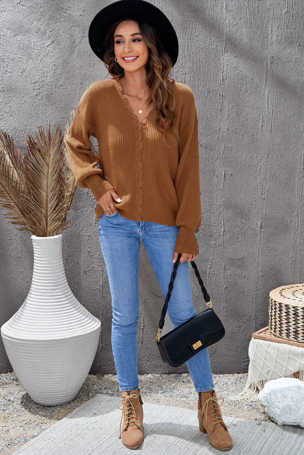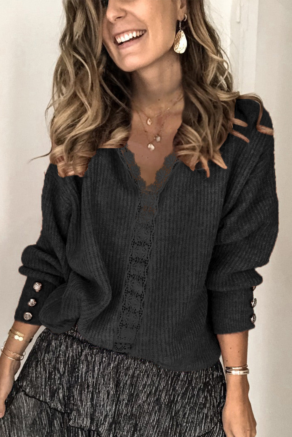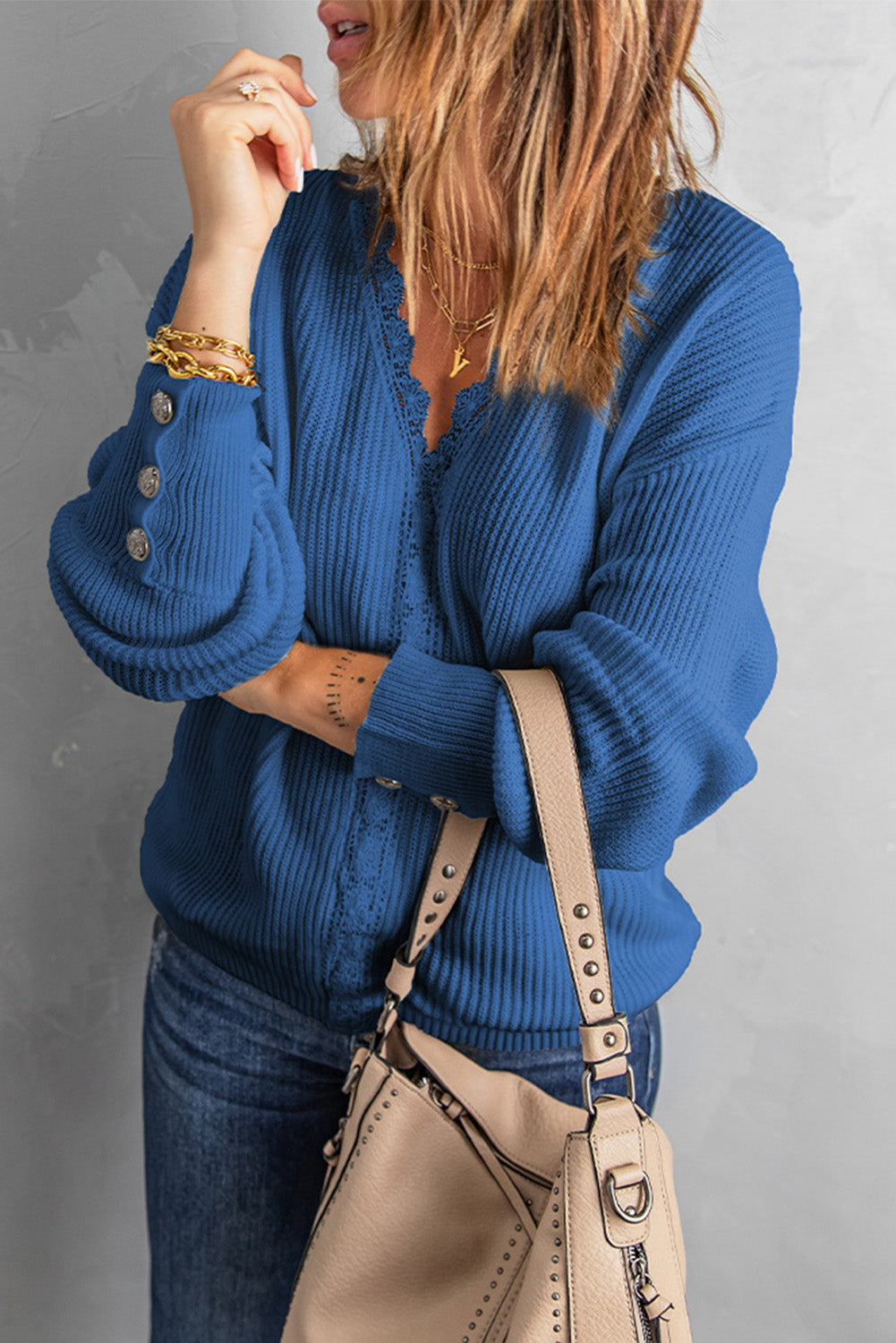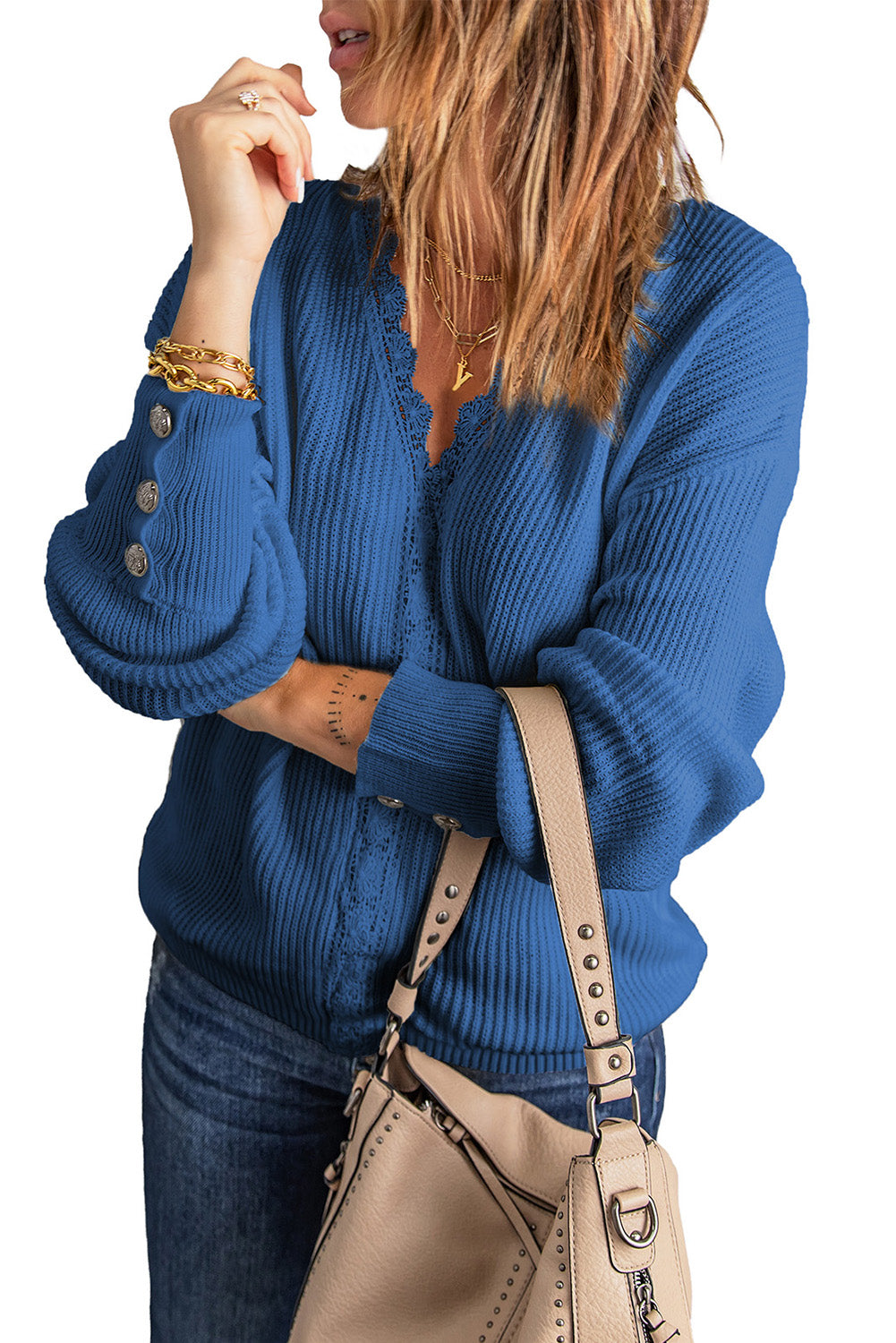•With the lace trim and buttoned design, the sweater is delicate and fashionable