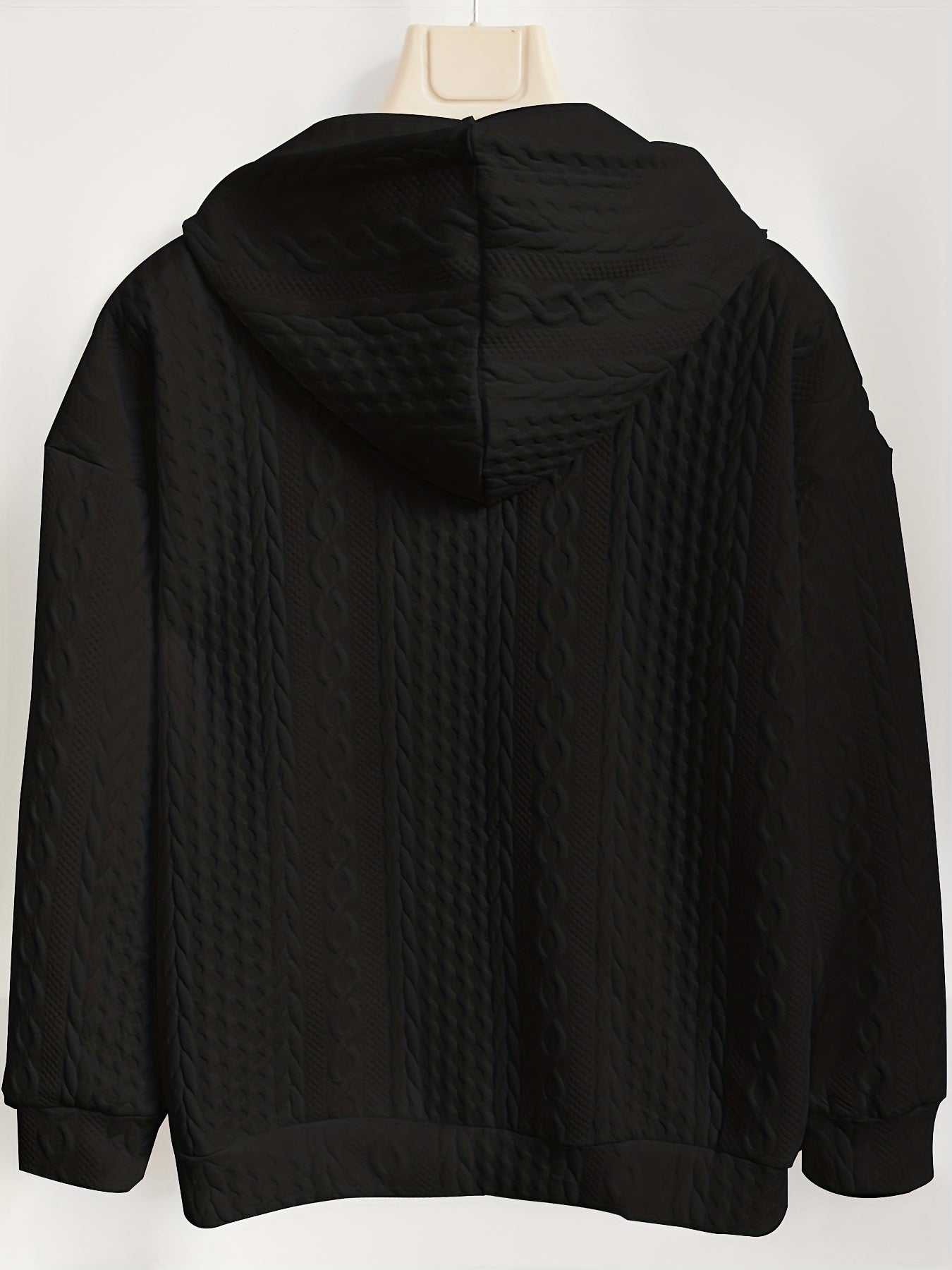 Cable Knit Quarter Zip Hoodie, Casual Long Sleeve Drawstring Hoodies Sweatshirt, Women's Clothing