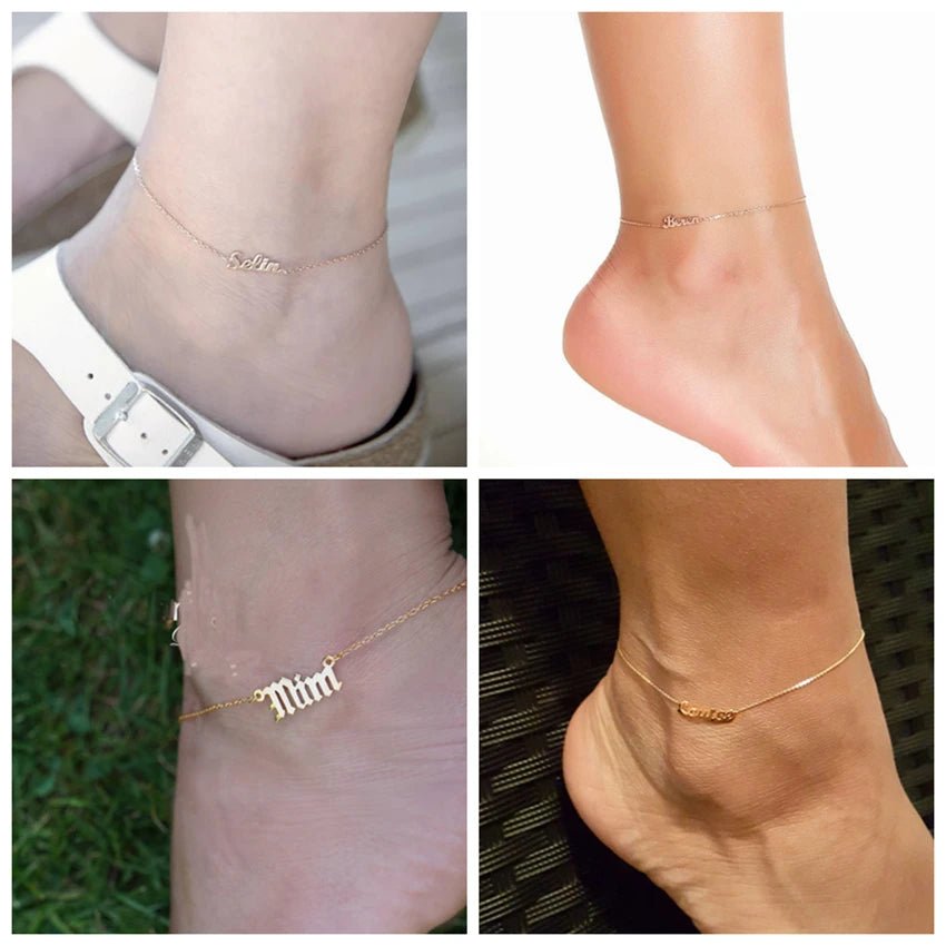 Charm Customed Name Anklet Bracelet Foot Handmade Letter Alphabet Anklets for Women Bohemian Beach Jewelry Valentine's Day Gifts
