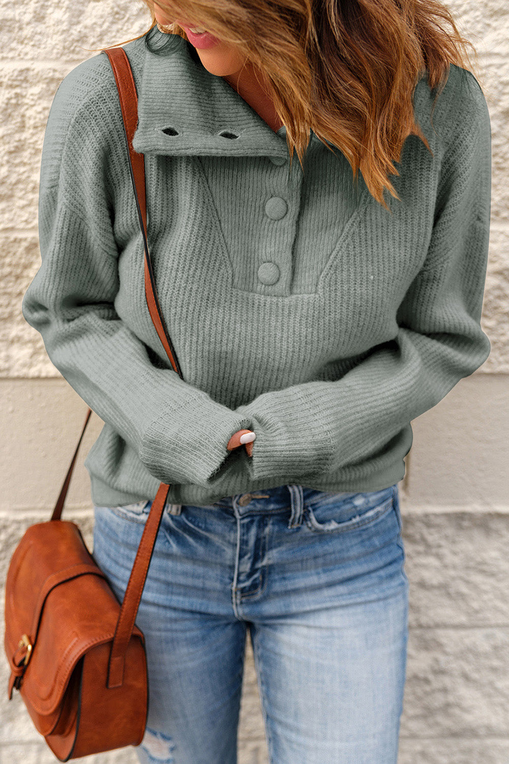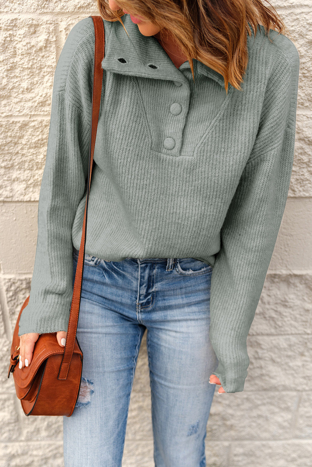 Double Take Half Button Dropped Shoulder Ribbed Sweater