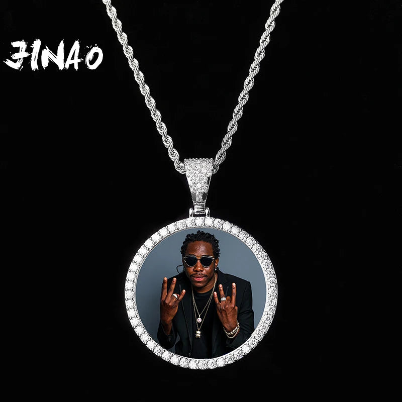 JINAO NEW Custom Ice out Large size Photo Round Necklace & Pendant With 4mmTennis Chain AAA Cubic Zircon Hip hop Jewelry