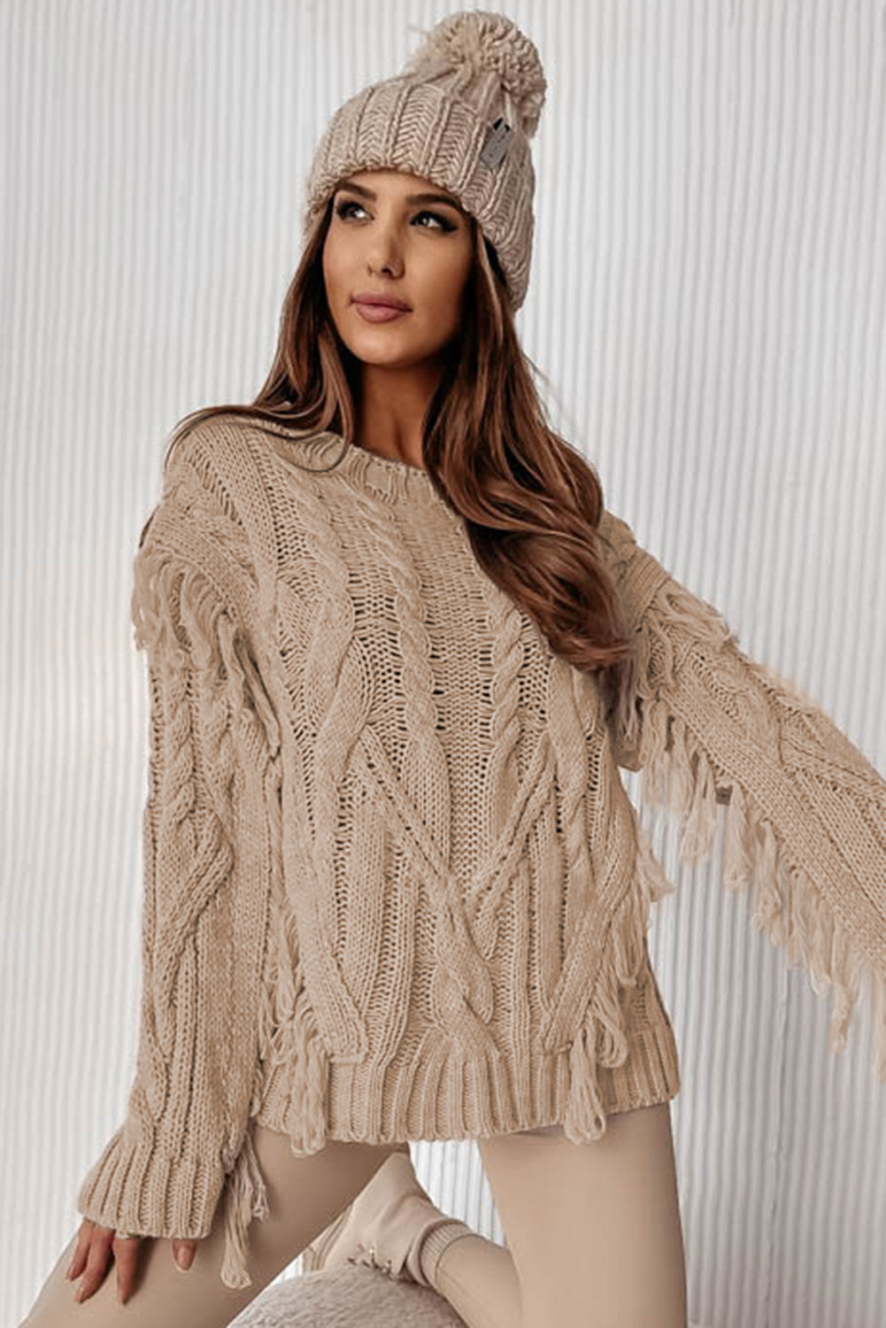 Parchment Tasseled Braided Knit Sweater