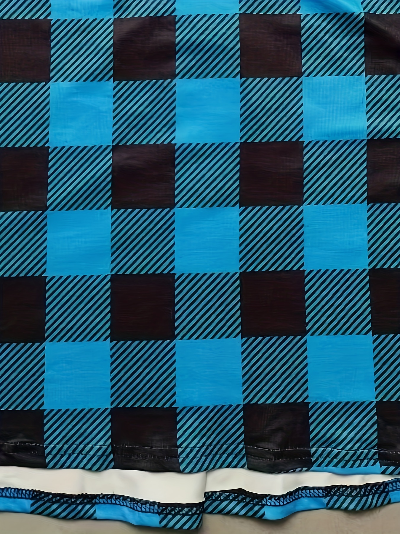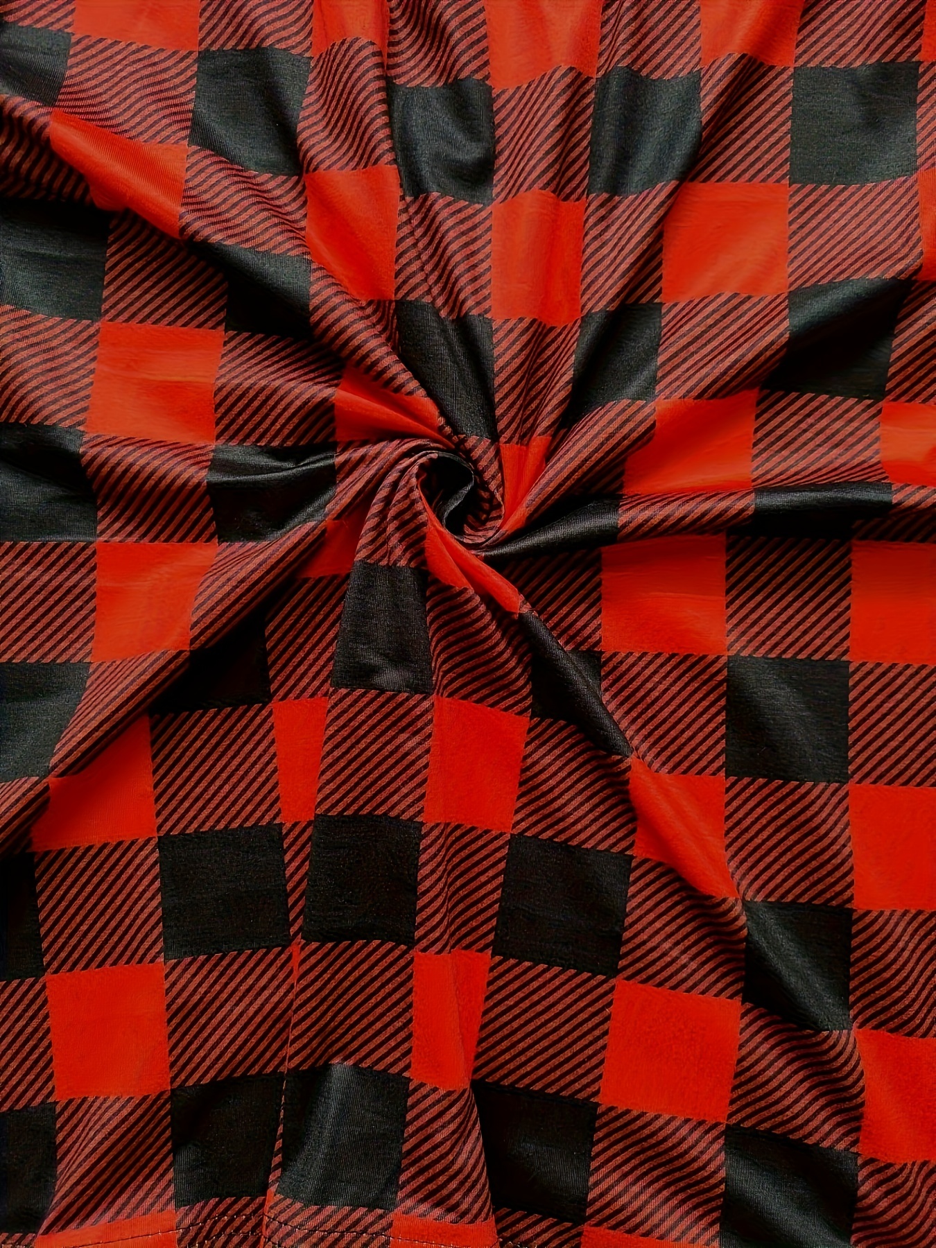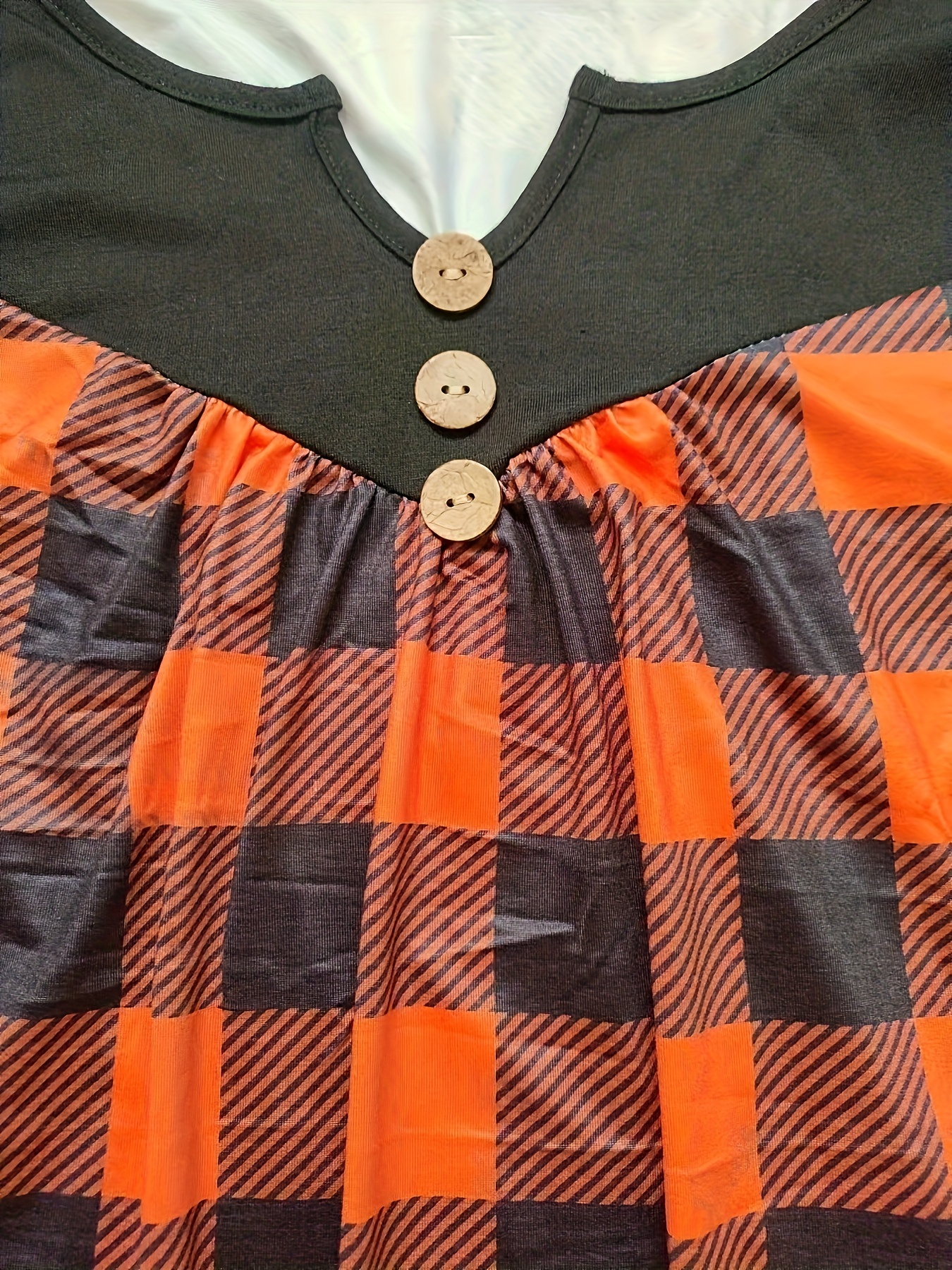 Plaid Print Notch Neck Button T-Shirt, Casual Long Sleeve T-Shirt For Spring & Fall, Women's Clothing