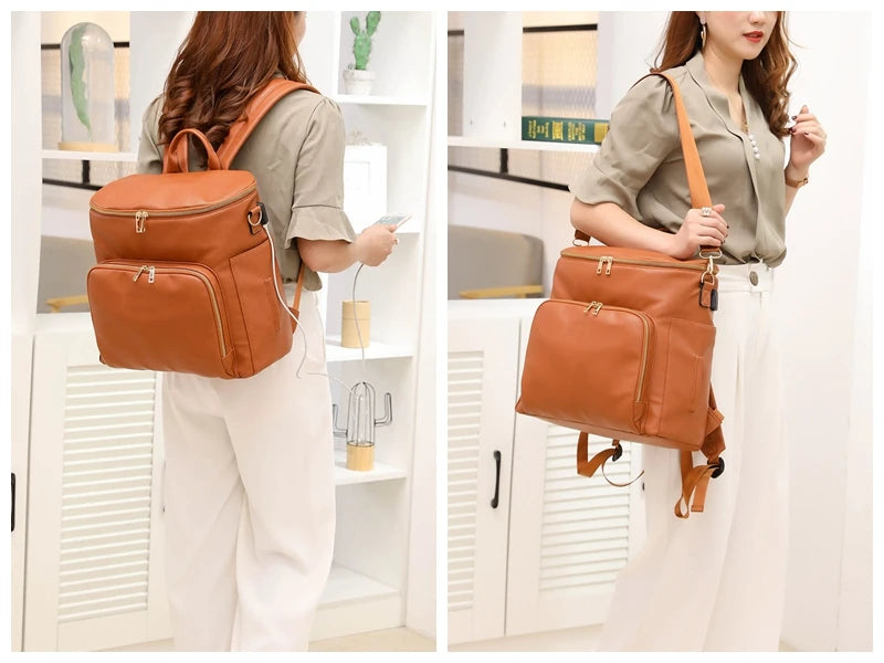 PU Leather Diaper Bag Backpack Travel Carry Bag, Nappy Baby Bag with Stroller Hanger|Thermal Pockets|Adjustable Shoulder Straps