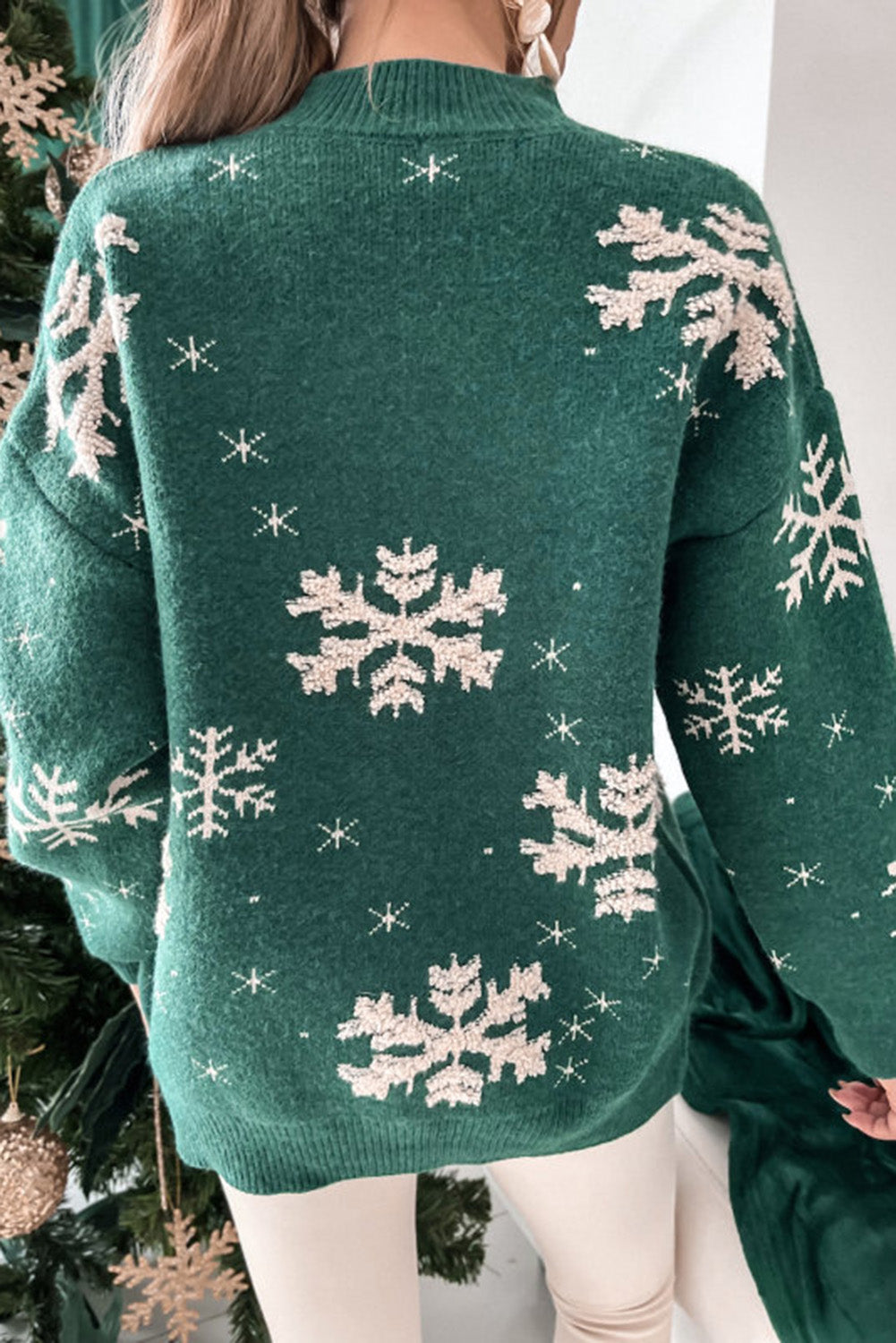 - Stay cozy all winter long with our Christmas Snowflake Mock Neck Sweater