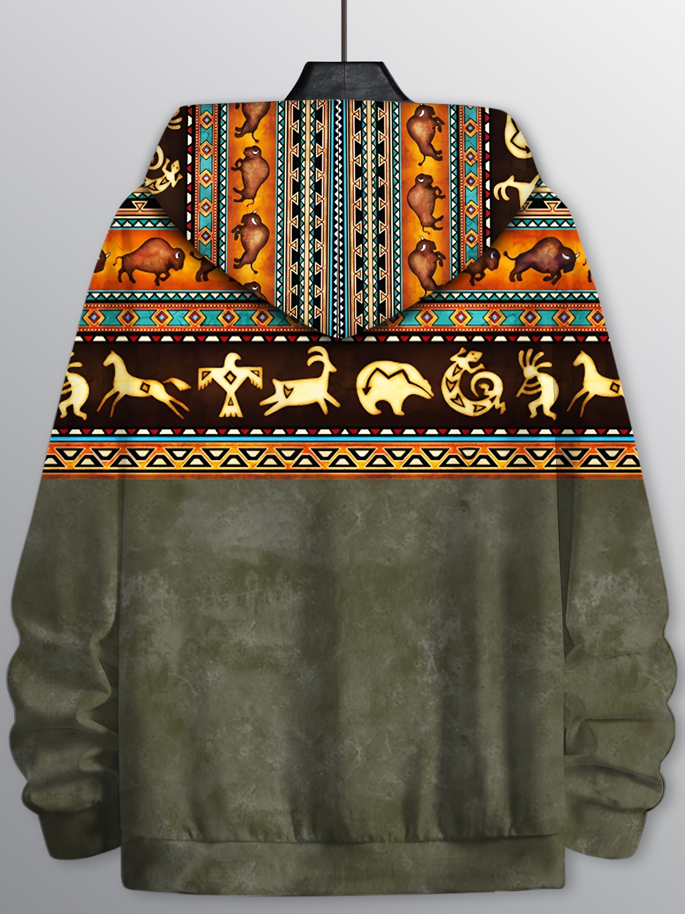 Retro Ethnic Pattern Print Men's Hooded Jacket Casual Long Sleeve Hoodies With Zipper Gym Sports Hooded Coat For Spring Fall