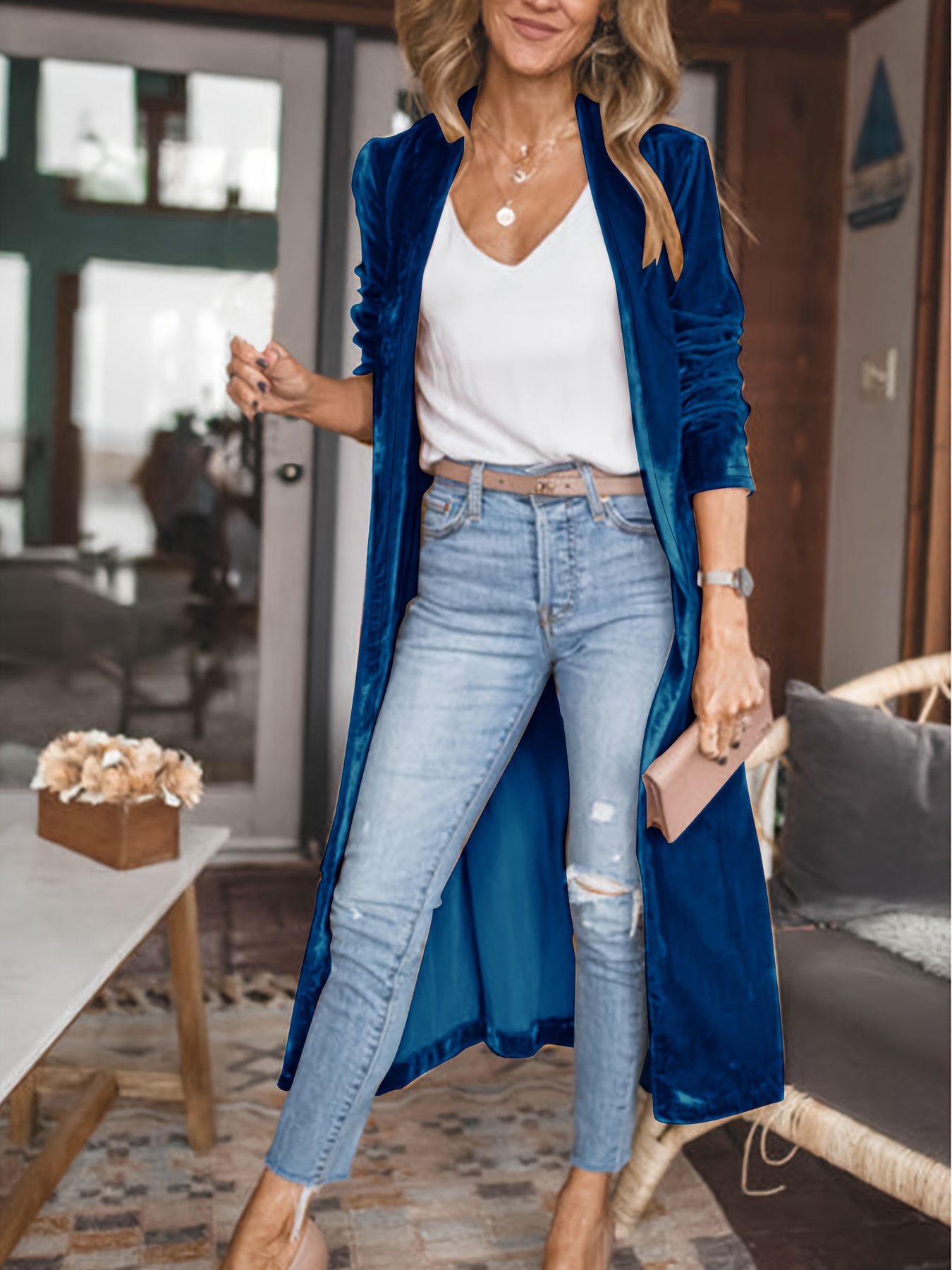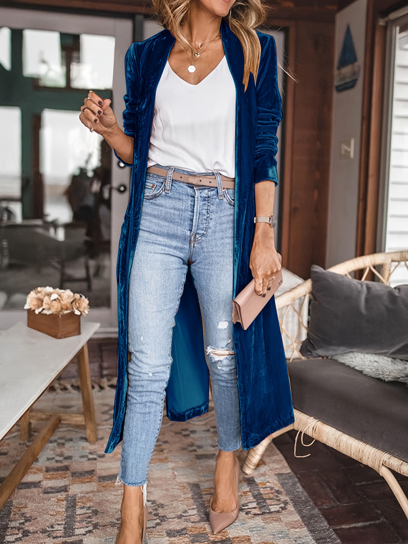 Solid Velvet Open Front Cardigan, Versatile Long Sleeve Outwear For Fall & Winter, Women's Clothing