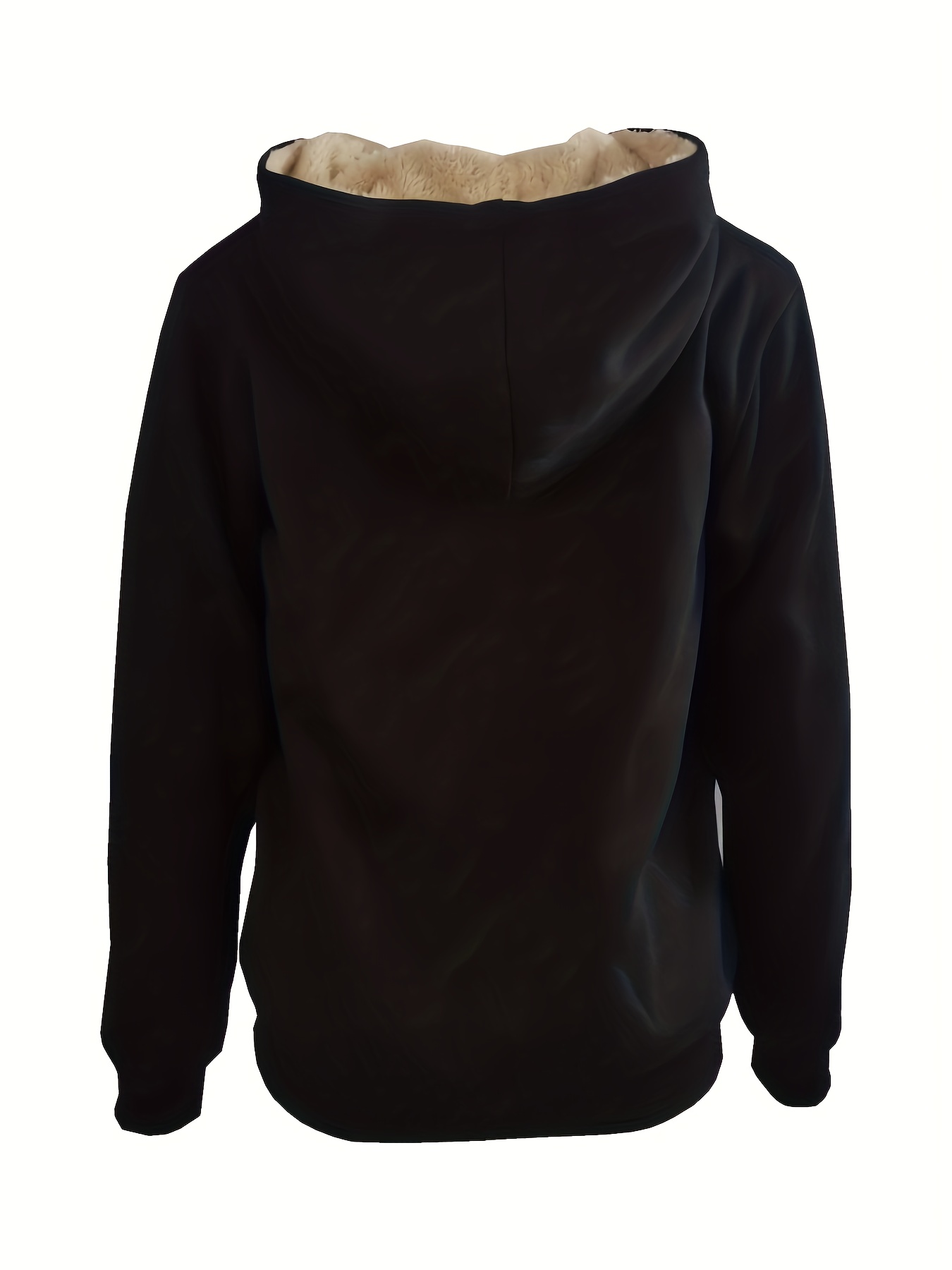 Solid Zip Up Fleece Drawstring Hoodie, Casual Long Sleeve Thick Warm Sweatshirt, Women's Clothing