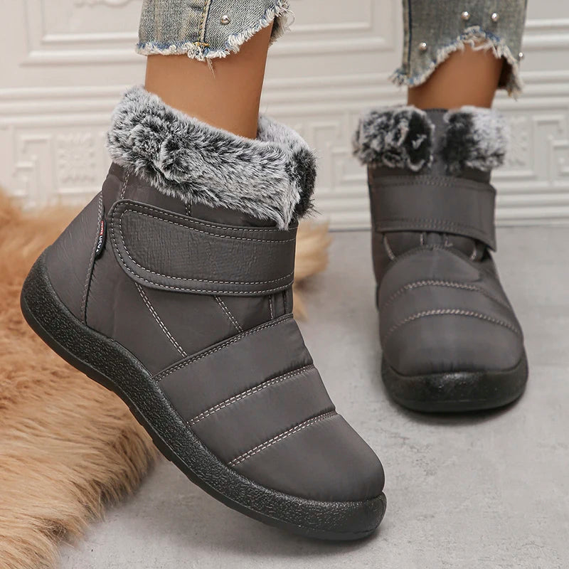 Waterproof Non-Slip Snow Boots for Women Faux Fur Plush Winter Ankle Boots Woman Hook Loop Down Warm Cotton Padded Shoes Botas