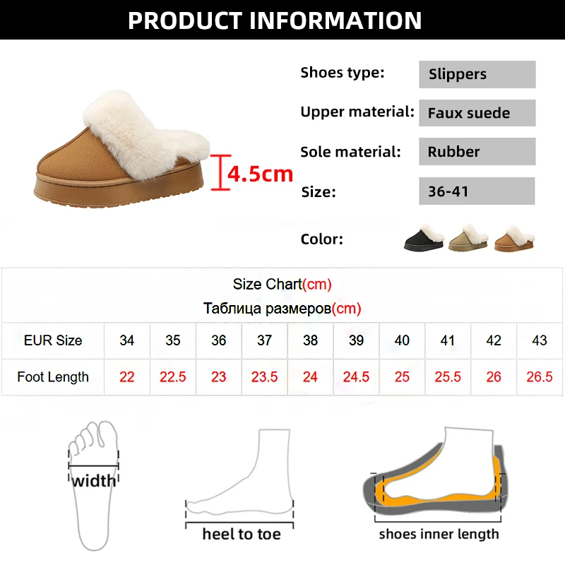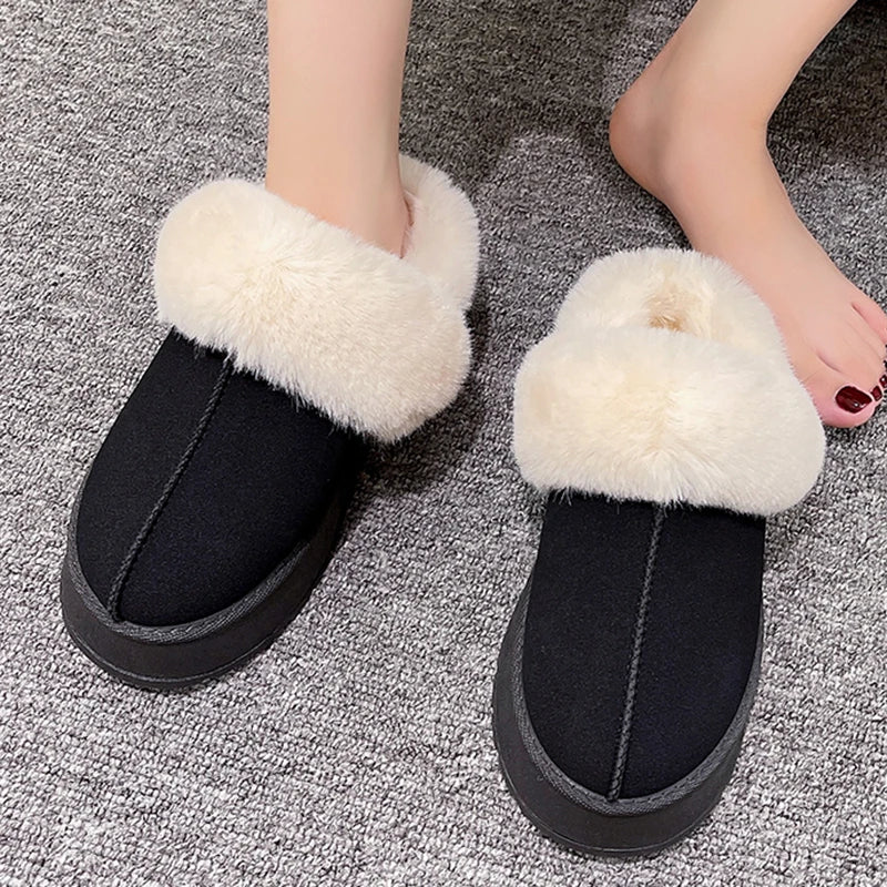 Women Thick Sole Faux Fur Slippers Winter Plush Warm Cotton Shoes Woman Indoor Outdoor Non Slip Fluffy Platform Slippers 2023